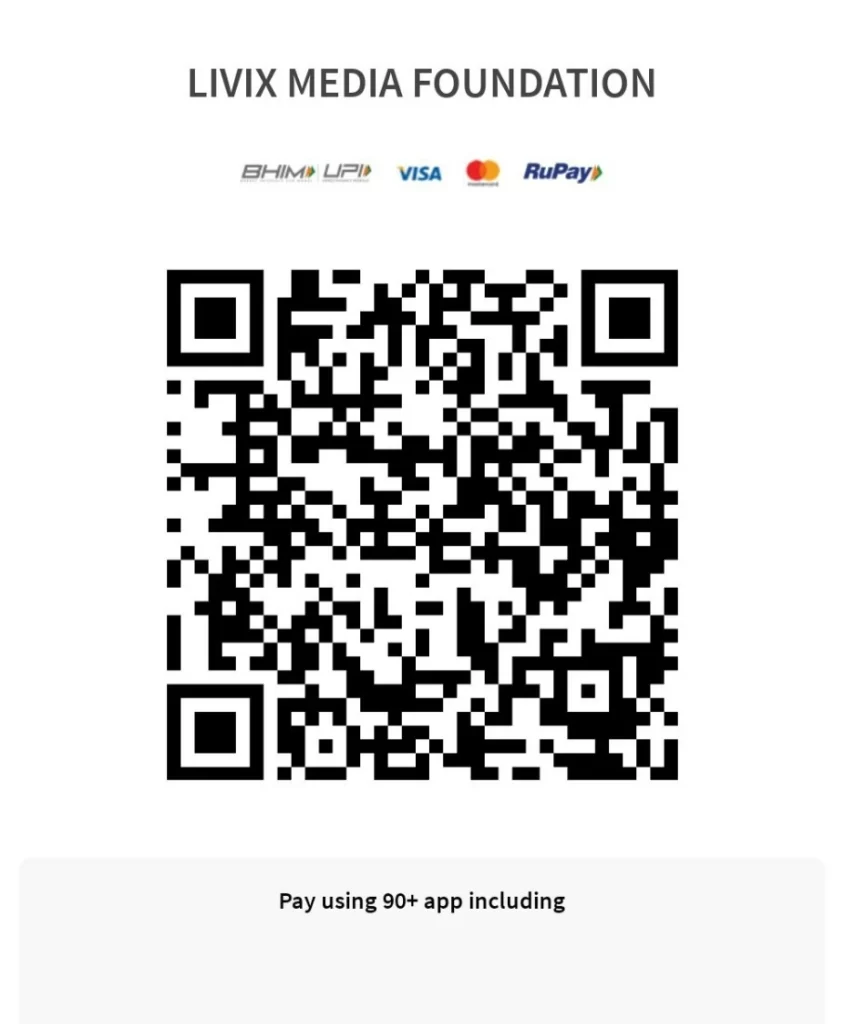 જો તમને અમારું કામ ગમતું હોય, તો Livix Media Foundation QR કોડનો ઉપયોગ કરીને અમને ટેકો આપો અને દાન આપો.